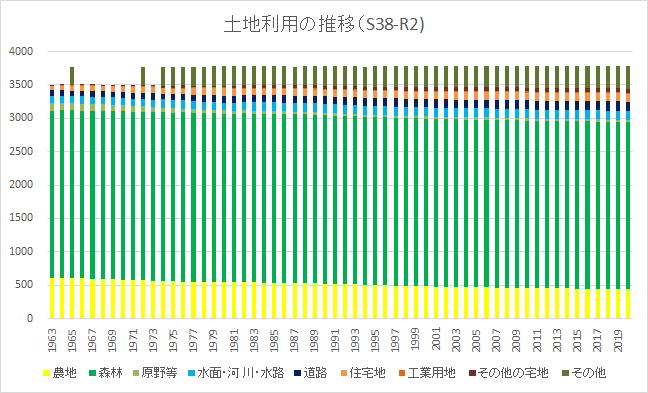 | 調査年 | 農地 | 森林 | 原野等 | 水面 河川 水路 |