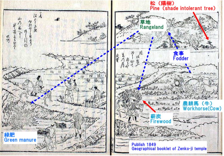| 土地問題は、それぞれの国の歴史に大きな影響を受ける。今日の日本では、国有地が24%、公有地が8%、私有地が52%、道や河川が16%となっているが、国として法制度が確立した646年は、100%であった。それまで、地方豪族の所有する土地を国有地にする一方で、地方豪族を役人として雇用する体制となったためである。このため、農民は国から土地を借りて、一定の収穫量を国に納めるシステムであった。 その後、人口増加による田畑の不足の結果、723年に開墾が認められるものの、開墾者のみが生存期間利用出来る法律を作り実施したため、新規に開墾を行うことが少なかった。この反省から、743年に開墾者とその子孫に土地を持ち続けることが認められる法律を作り実行した。国有地化してから、約100年で、私有地が認められることになった。 その後、開墾が全国規模で始まると、22年後に、一度開墾が禁止された。乱開発による被害が多発したためと想定される。開墾禁止期間は7年であったが、その後も開墾は再開された。 開墾地は私有地であること。このため、納税の義務がないため、中央政権の貴族(役人)や寺が出資者となり、開拓地に農民を集めた。この時、国有地より安い使用料を徴収することで、人材を確保した。一方の国有地では、負担の軽い開墾地に人が流出したため、中央政権の税収が落ち込むと共に、耕作放棄地が増加した。400年後には、国有地が10%、私有地が90%になった。この絡繰りは、耕作放棄地である国有地を再度開墾して使うことで、私有地に編入したからである。中央政権の貴族(役人)が新規に開墾した土地と放棄された国有地の再度開墾した土地を取得し続けて、税収の落ち込みと給与の遅配、未配があっても気にせず、私腹を肥やす構造である。なお、地方の私有地を守るのが侍であった。侍は、私有地となった農園を、野盗から守ることを目的に、農民が武装化した私兵です。 その後、地方にいる侍集団の力が強くなり、中央政権の貴族(役人)との力関係が逆転し、日本では貴族社会から武家社会に移行した。地方の侍同士の勢力争いの結果、大名(独自性の強い地方政府)の登場となる。300年近い月日が流れる中、田畑は農民の所有となる。かつての農民は、所有者である貴族に対して使用料を払らっていたが、貴族の影響がなくなると、大名が農民を保護するための費用として支払うことになった。このため、大名は、灌漑整備、治水工事等のインフラ工事、流通制度の整備、治安対策、農業の技術開発による土地生産性を高める等、農民の保護も含む内政に力を注ぐようになった。なお、余りにも農民の負担が高くなれば、農民は領地から逃亡する、もしくは抵抗勢力になるため、高い税率にはなりにくかった。 当時、平地では水田や常畑においては、農民の所有権、利用権が明確であったが、山林(草山)は不明瞭であった。例えば、当時は循環型の焼畑移動耕作が一般的に行われており、A斜面は、C村のDさん家族が利用している、B斜面は、E村のFさん家族となっているものの、休閑期には他人が薪炭採集や、山菜採り、キノコ採りが認められており、利用に関する権利関係が複雑となっており、田畑と比べると不明瞭となっていたが、問題になることはあまりなかった。 また、平地では、水田や常畑で農耕を行っているが、持続的な収穫を得るには、施肥が必要であった。当時は化学肥料や魚粉・魚滓がなかったため、山や里から採取した緑肥を与えていた。この緑肥は、集落周辺の山から供給していたため、草原(草山)が広がっていた。 ![]() このように、山林(草山)は、燃料である薪炭供給の場、農耕用牛馬の餌場としての秣場、田畑の地力維持のための緑肥提供の場、椎茸や木の実などのNTFP提供の場であったが、当時の農民には、土地の所有という概念はほとんど無く、資源量が重要であった。 1582年の全国統一測量の結果、水田や畑の所有権は明確になっていたが、山や集落周辺の丘陵地には、明確な境界線を設けるまでには至らなかった。しかし、自然資源をめぐる争いが発生すると、何処まで利用出来るか個人同士ではなく、集落単位で争うことになる。その結果、一部では、境界線が設定され、集落単位の森林(草山)が発生した。地方政府は、境界線設定時おける集落間の対立にも立ち会っており、地方政府公認による共有林も1600年代より増加した。なお、田畑と比べ、税金が一律ではなく、地方政府に生産物の一部を治める、売買益の一部を治めることが行われた。 明確になった場所の多くは、大都市に近く、都市住民向けにNTFP(薪炭、薬草、漆、木蝋など)を販売していた地域である。都市に対して林産品を提供するため、自然資源の囲い込みが発生し、私有林、集落林として、境界線が明確になった。この権利を守るため、地方政府に、売上の一部を寄贈することで、保護を求めており、1873年の地租改正時に税金を納めることに抵抗感はなかった。 逆に、自家消費として利用し